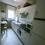 A fully equipped kitchen with a microwave oven and a refrigerator is available in the apartment, along with tea/coffee making equipment. The 50 m^2 apartment is nestled within short walking distance of Otxarkoaga tube station.